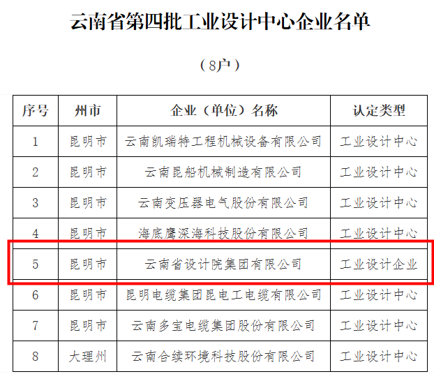 集團獲評云南省“工業(yè)設計企業(yè)”